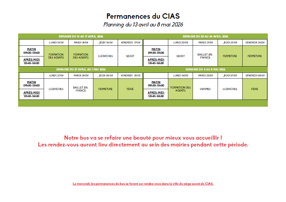 📅 Permanences du 13 avril 2026 au 08 mai 2026